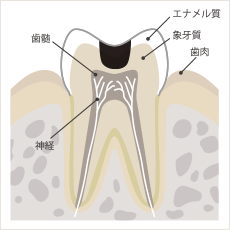 エナメル質に穴や茶・黒ずみができている状態。