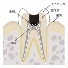 歯の神経(歯髄)に達し、歯髄炎を起こした状態。