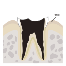 歯全体が虫歯に侵され、歯根部だけが残った状態。